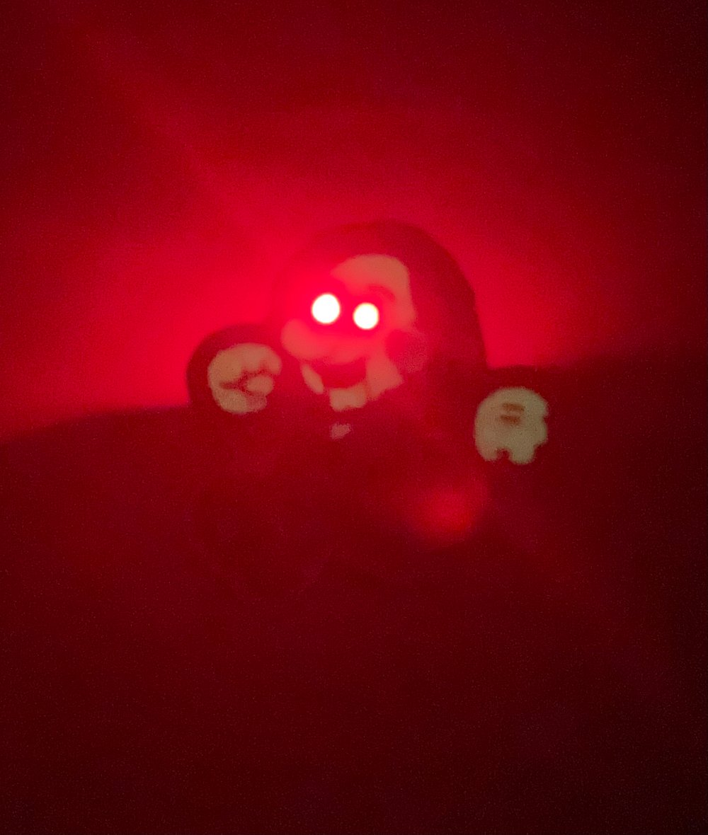 "I want to play a game." When you hear that, you're destined to live the rest of your life in agonizing pain. Get this pin to ease your suffering! This pin features LED light up flashing red eye action.