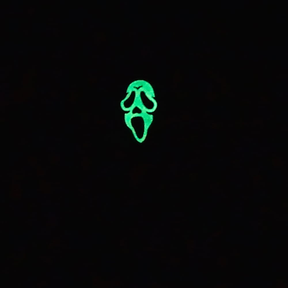 Ghostface will be chasing after you and your friends when this pin is attached to your gear! Face mask glows in the dark!
