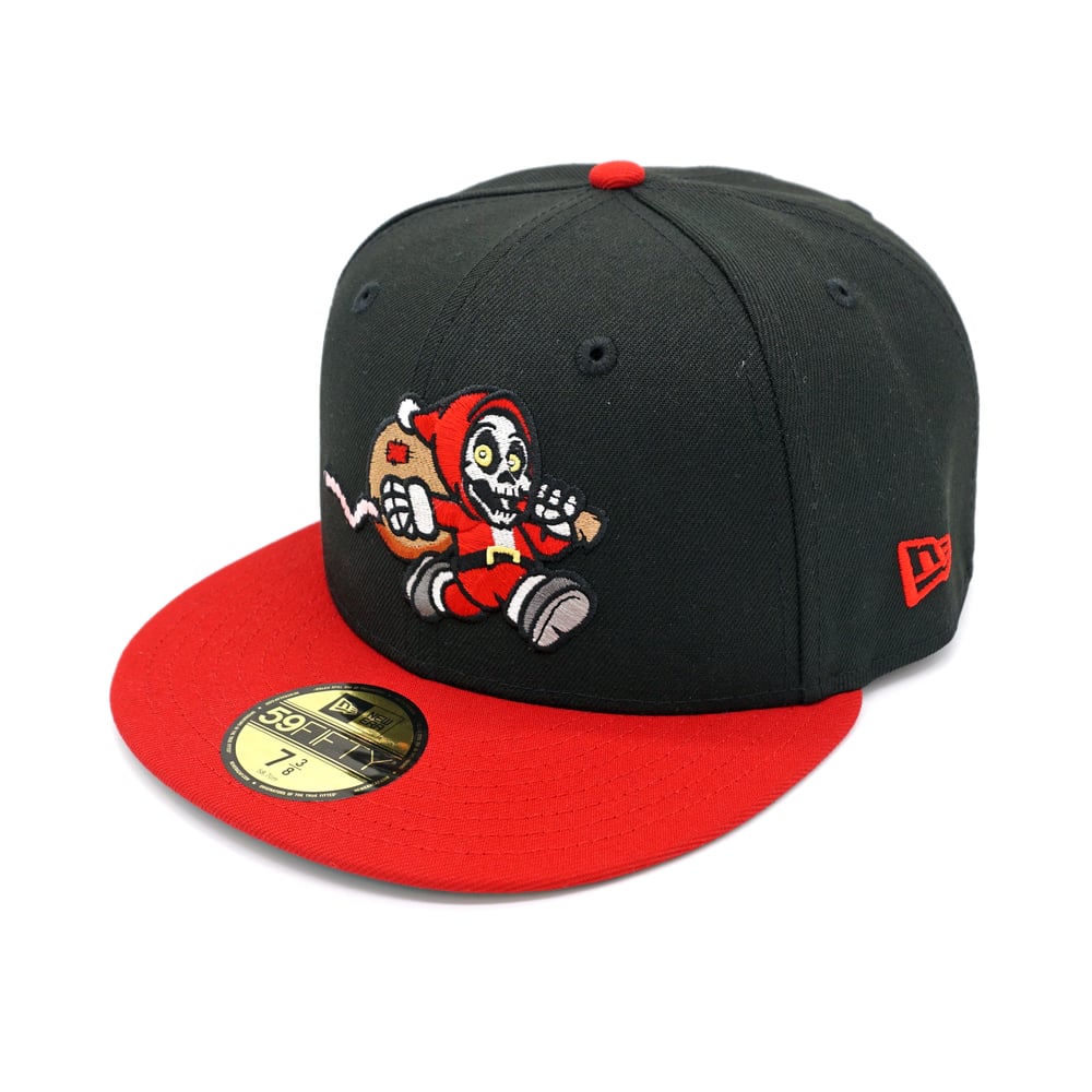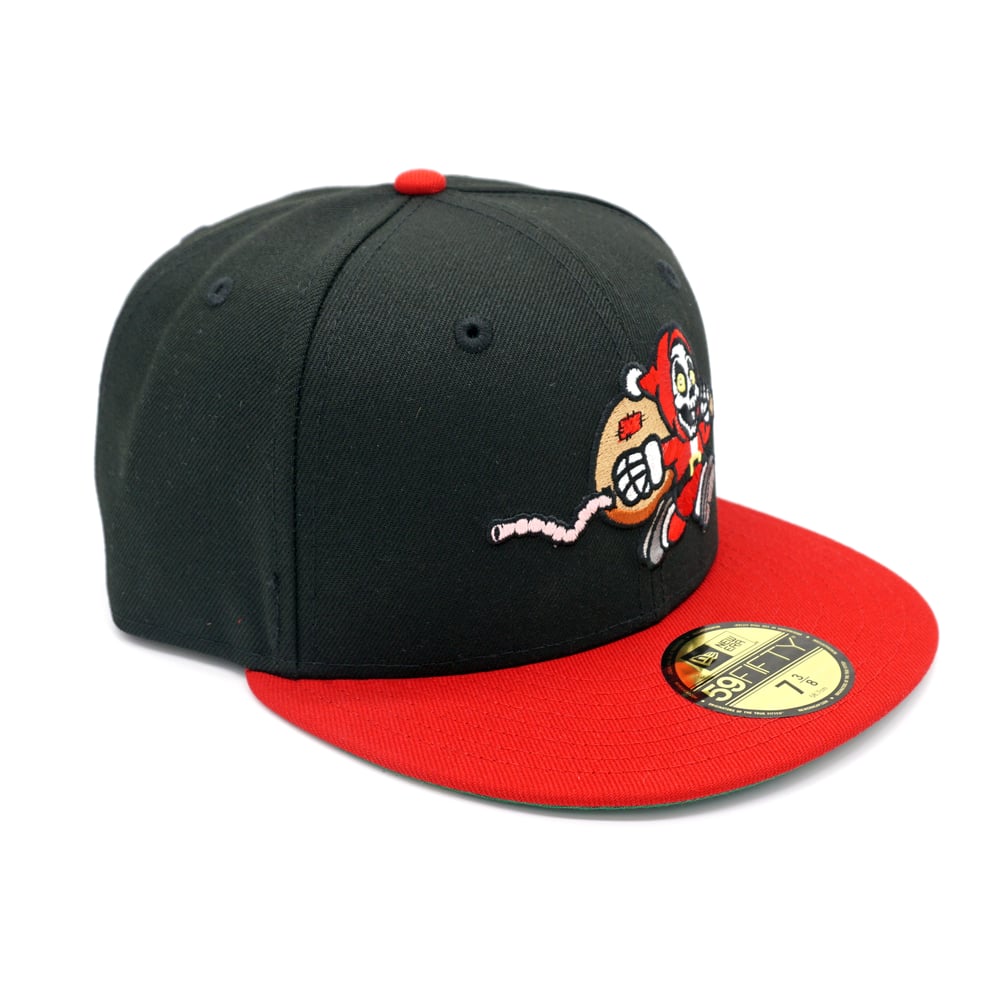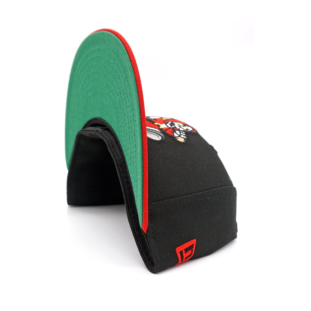 Santa is coming to town and his bag is full of unspeakable surprises for the holidays. Celebrate the day with the newest version of this classic cap! This cap features a not-so-festive black crown with a scarlet visor and button and green under.