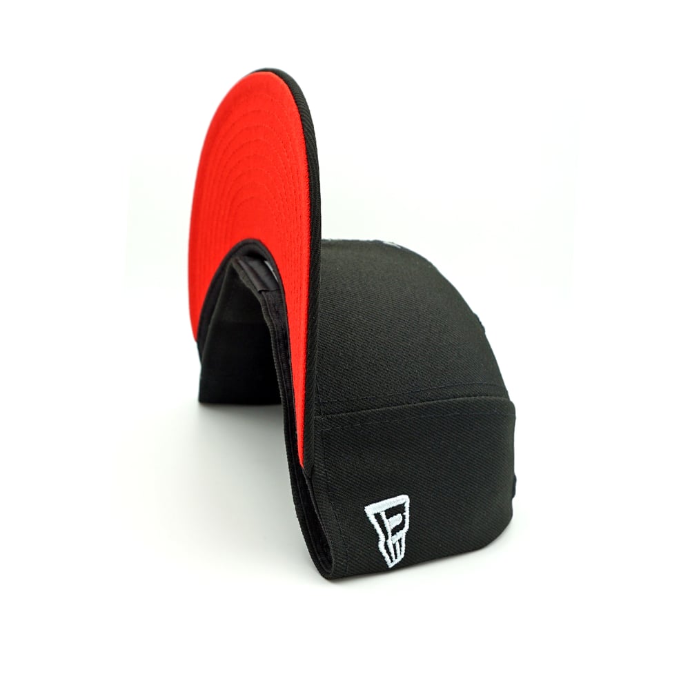 Crown: Black / Visor: Black / Button: Scarlet / Under: Scarlet