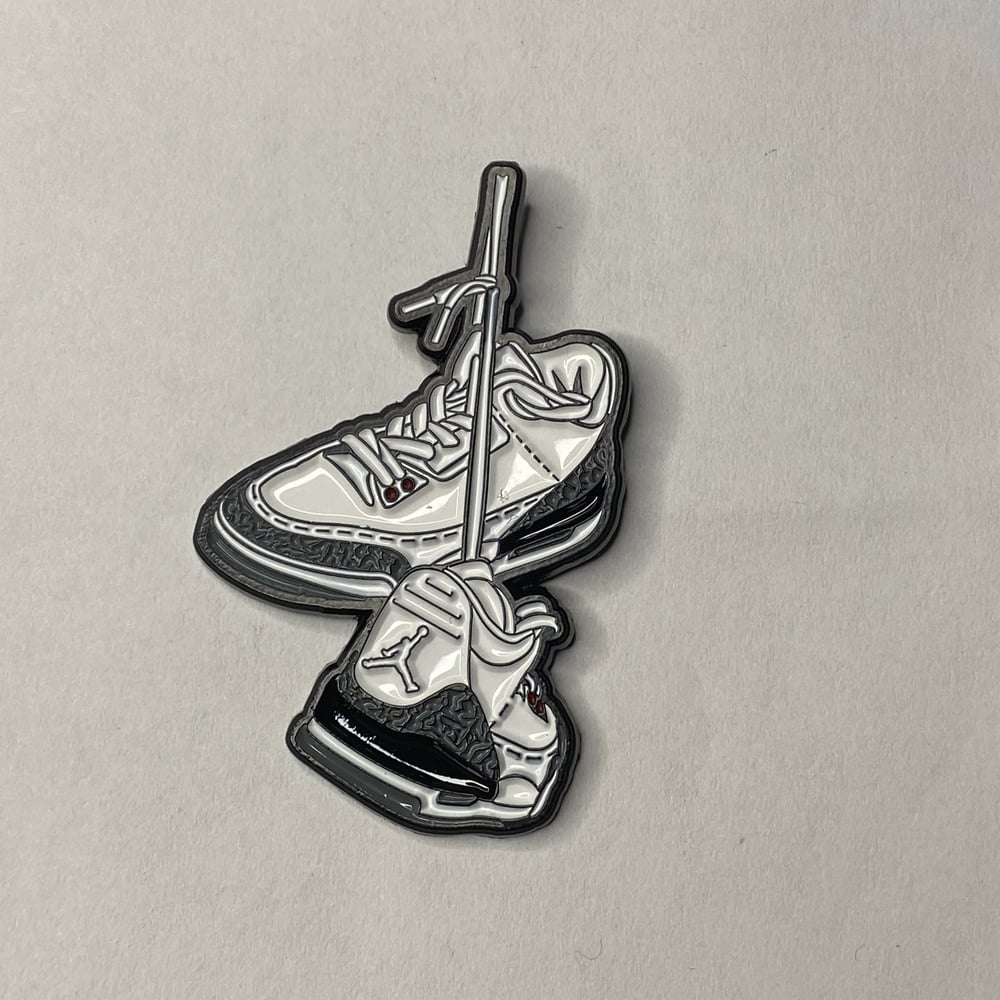 This soft enamel pin is 1.25 inches tall with a black metal finish.