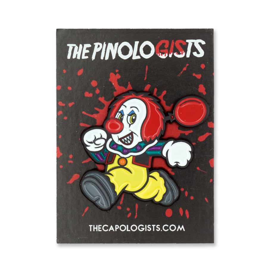 He's creeping in the sewers and stomping goombas, its Pennywise the clown! This enamel pin is a mashup of Mario x Pennywise (old version).