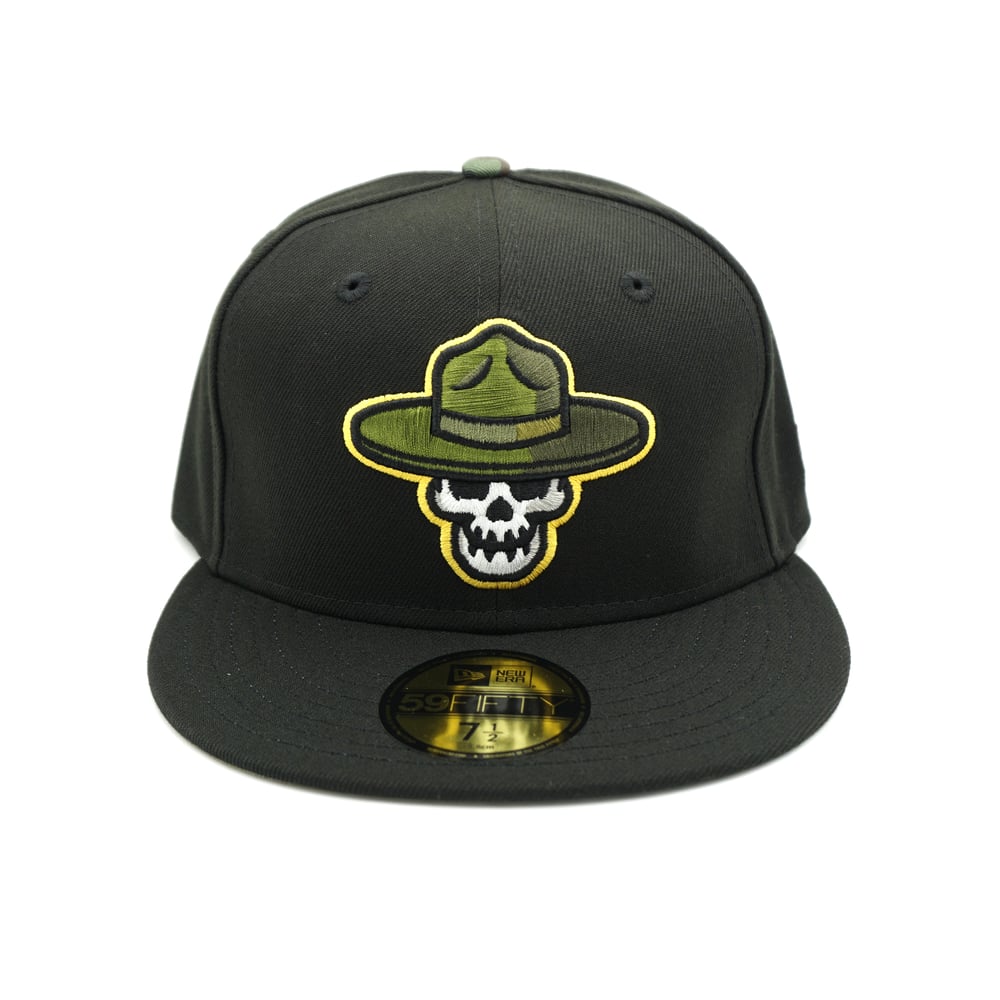 40 years ago our good friend John McNutt walked on to Paris Island to become a Marine. The first face he saw was a DI (Drill Instructor) screaming at him to get on the yellow foot prints! A follow up to our original collaboration Aces High, the TEN-HUT V.2 features an all black cap with a camo button and under!