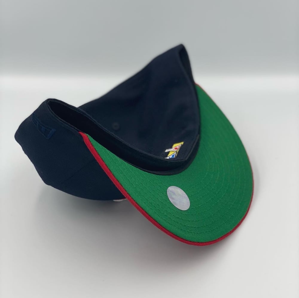 We are back with a new cap to represent the brand. This time in a two-tone, navy, and red combo with a kelly green under visor to set off the look!